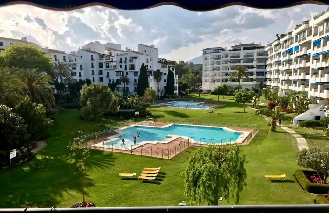 Banus Center Parking And Pool Apartment apartment includes a patio, complete with a work desk and modern conveniences such as a TV. The accommodation is equipped with a bathroom that features hairdryers and bath sheets.